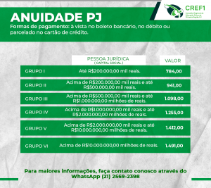 O pagamento da anuidade de Pessoa Jurídica está disponível de forma online e pode ser realizado à vista ou parcelado no cartão de crédito